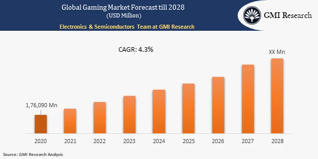 Gaming Market is accounted for USD 1,76,090 million in 2020, growing at a robust CAGR of 4.3% during forecast period.