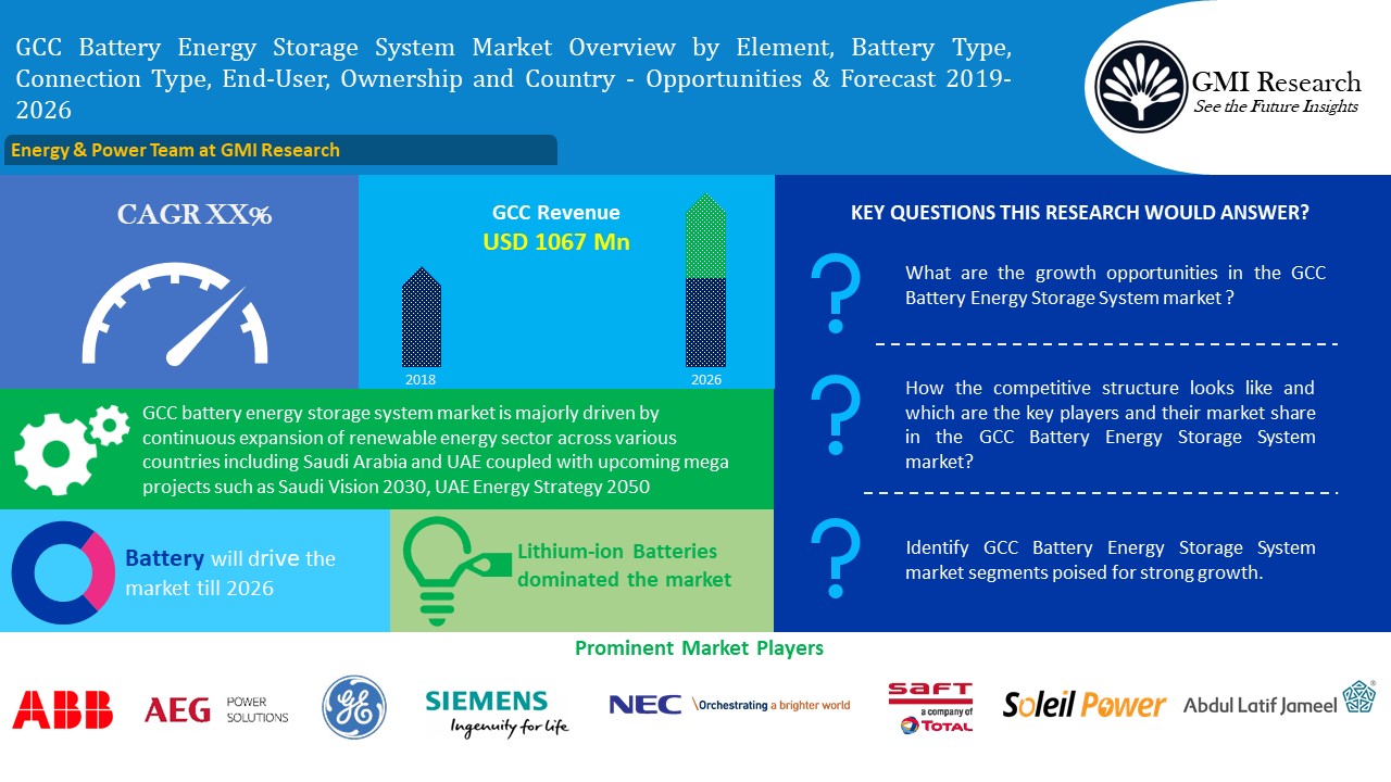 According to GMI Research’s latest report, the GCC battery energy storage system market is expected to grow at a robust CAGR from 2019-2026.