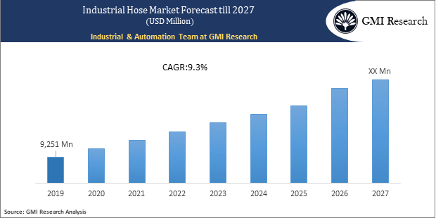 Industrial Hose Market witnessed USD 9251 million in 2019, growing at a robust CAGR of 9.3% during forecast period.