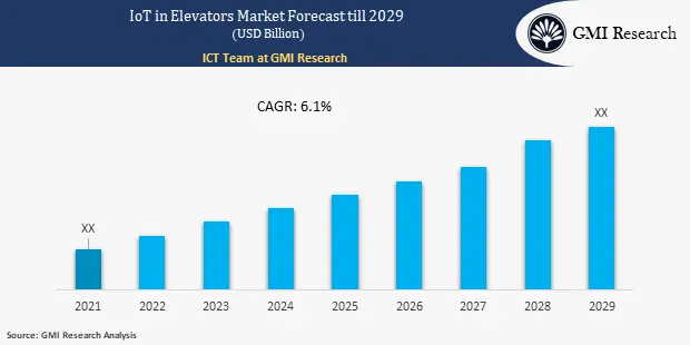 Analysts at GMI Research estimates that the IoT in Elevators Market is projected to grow at CAGR of more than 6.1% during the forecast period from 2022-2029.