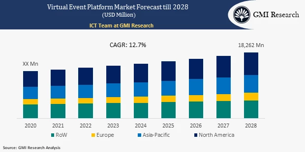 The Virtual Event Platform Market is predicted to rise to USD 18,262 million by 2028, witnessing 12.7% CAGR during 2021-2028